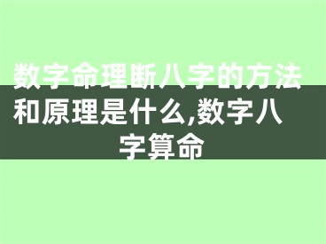 数字命理断八字的方法和原理是什么,数字八字算命